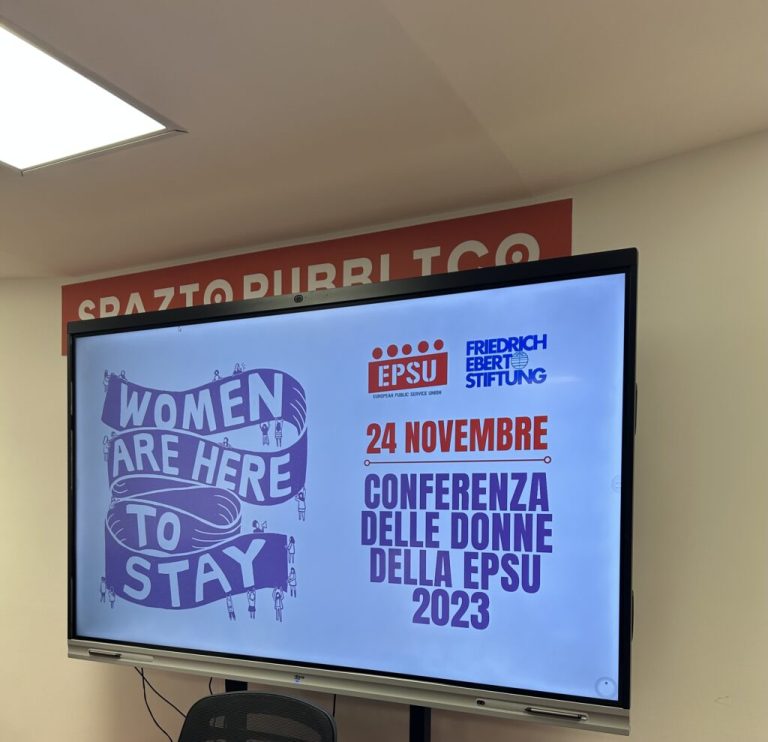 24. studenoga u Rimu održana je međunarodna konferencija i javno okupljanje na kojoj su članice Europske federacije sindikata (EPSU) iz 28 zemalja, uz podršku talijanskih sindikata jasno poručile-NEĆEMO šutjeti!! Žene su ovdje i tu će i ostati!
