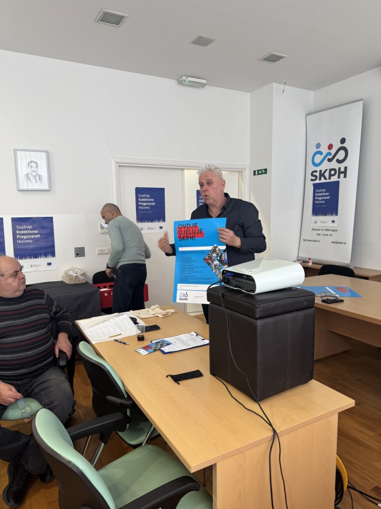 Sudionici su kroz interaktivan rad razmjenjivali iskustva te usvajali praktična znanja važna za učinkovito sindikalno djelovanje, uključujući osnovne alate za jačanje sindikalne organiziranosti i strategije za kvalitetnije kolektivno pregovaranje. U radionici su sudjelovali sindikalni povjerenici SKPH povjerenike s područja Grada Zagreba,. Sisačko-moslavačke i Zagrebačke županije.